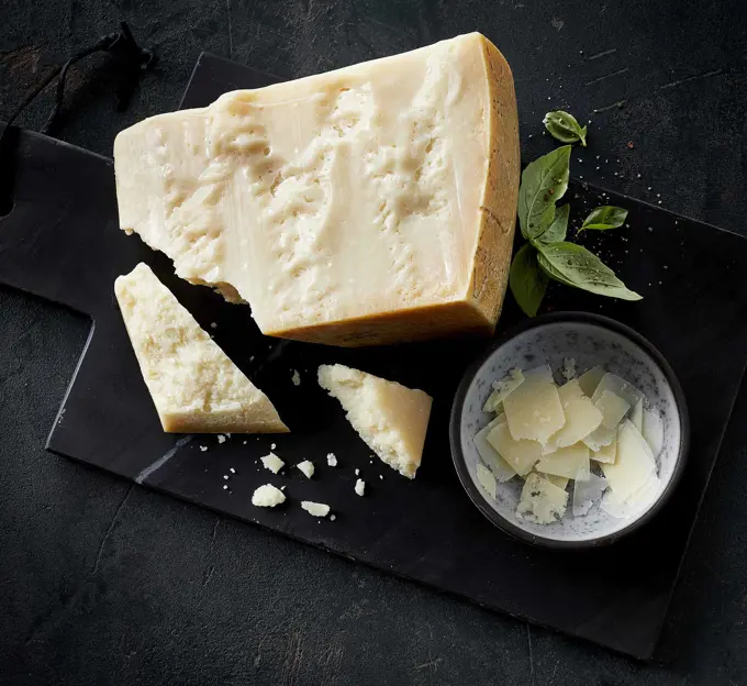 Parmigiano Reggiano er en hård ost, som udelukkende fremstilles af rå mælk fra kvæg, der græsser på lokale græsjorder og bjergsider i det nordlige Italien. Parmigiano Reggiano er kendt og elsket for sin enestående naturlige umami-smag. En fin smag med toner af ristede mandler og strejf af brunet smør afrundes i en skarp og saltet eftersmag. Den bløde fornemmelse forfører sanserne med komplekse smage og teksturer og giver dig lyst til endnu mere.