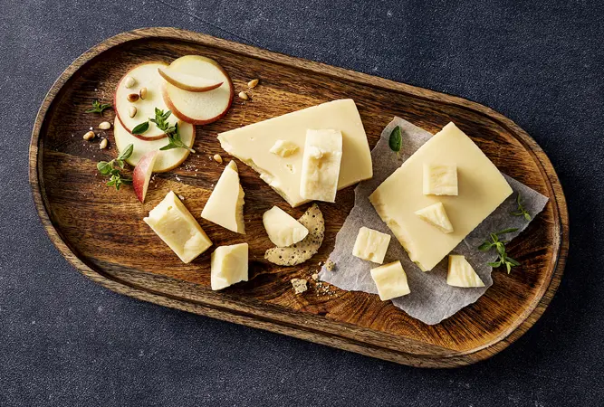 Castello Gouda er kreativt udformet af vores dygtige mejerister i Tistrup, en sydvestlig by i Danmark. De har fulgt de traditionelle hollandske teknikker og yderligere forbedret gouda ostens bedste kvaliteter. Resultatet? En serie af oste, der både er sofistikerede og harmoniske i smagen. Når Castello Gouda lagres, bliver den lidt hårdere og udvikler en endnu mere fyldig smagsprofil med dejlige nøddeagtige noter. Hver bid af Castello Gouda giver en lækker multisensorisk oplevelse for dine smagssanser.