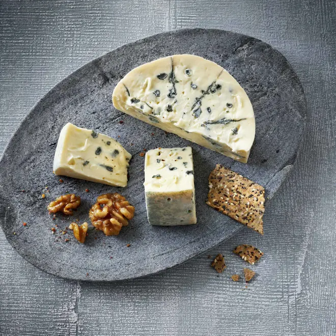 From mild to bold, blue cheeses include Gorgonzola (PDO), Creamy Blue, Stilton (PDO), Roquefort (PDO)& Danish Blue (PGI).