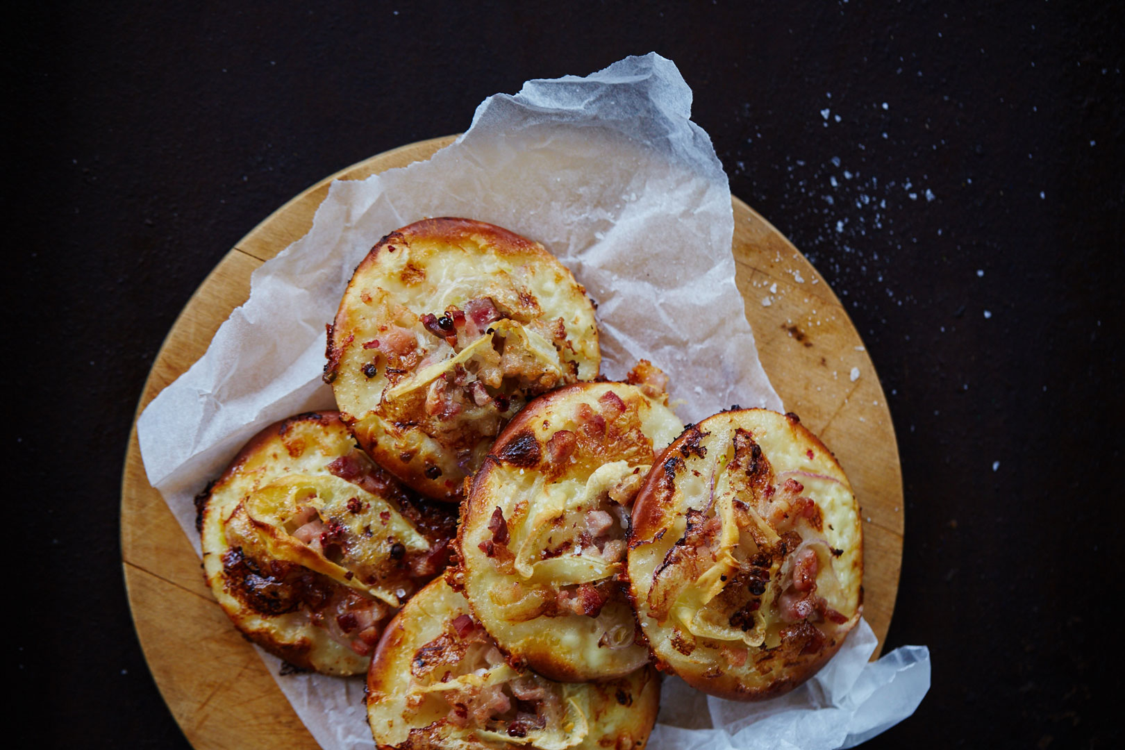 Do you like mini pizzas? Then you will certainly also enjoy these small German tarte flambée stuffed with bacon, onion and Castello Creamy White. We don’t want food interrupting the flow of the game and these portion sized tarts are perfect to eat with one hand.