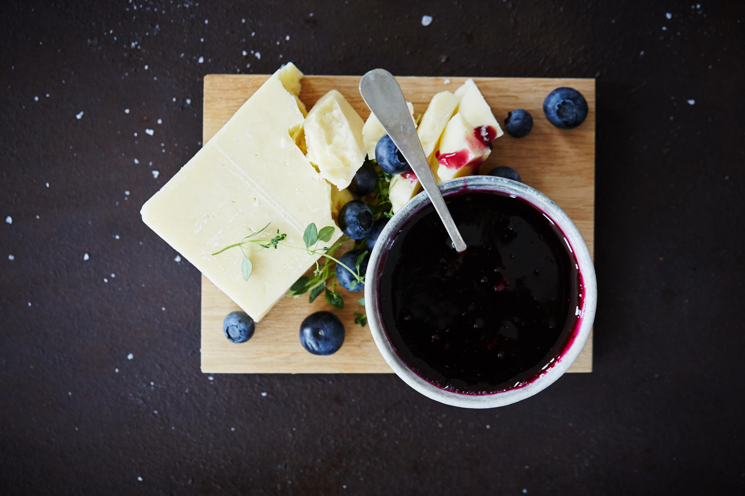 Who doesn’t enjoy a bit of sweetness after some savory snacks? This delicious blueberry syrup with a little lemon thyme is a delicious match with the rich and slightly crystalized Castello Matured Cheddar.
